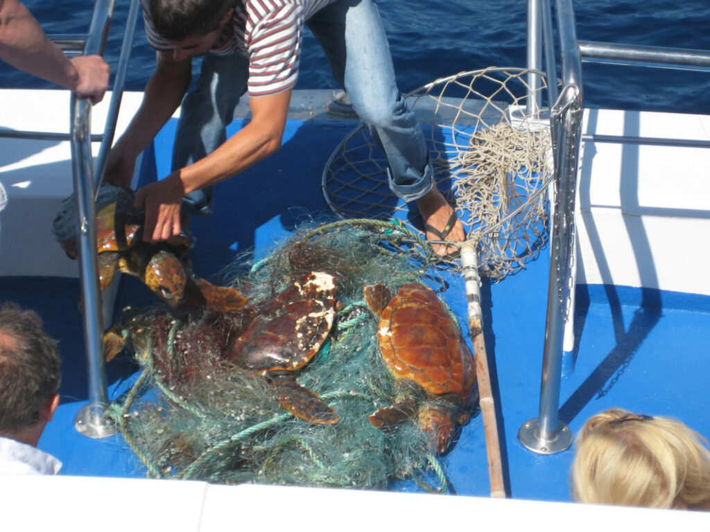 En otras ocasiones encontramos delfines o ballenas con problemas e intentamos liberarlos de sus condenas.