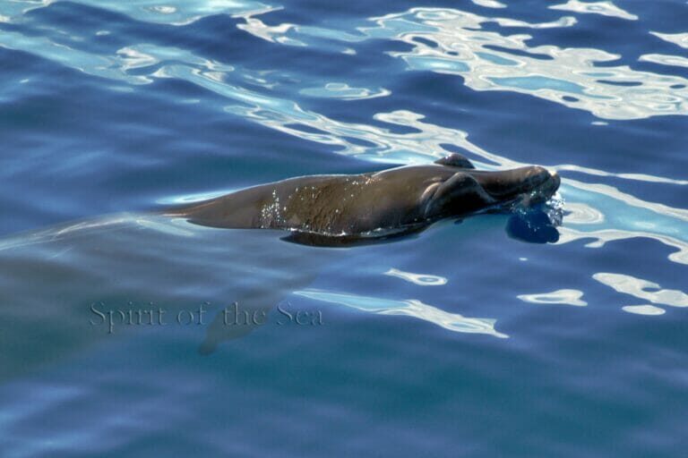 Zifio de Blainville (Mesoplodon densirostris) max. 5 m. 1 Tn.