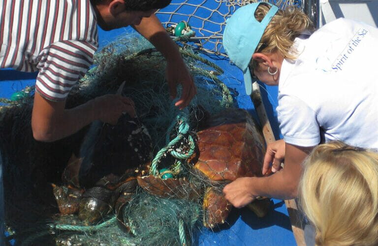 Las redes y otras artes de pesca a la deriva acaban con frecuencia con la vida de la fauna afectada o generan graves lesiones.